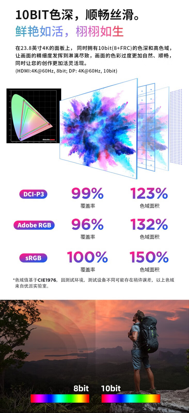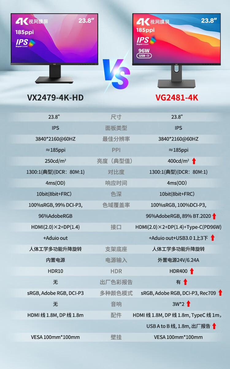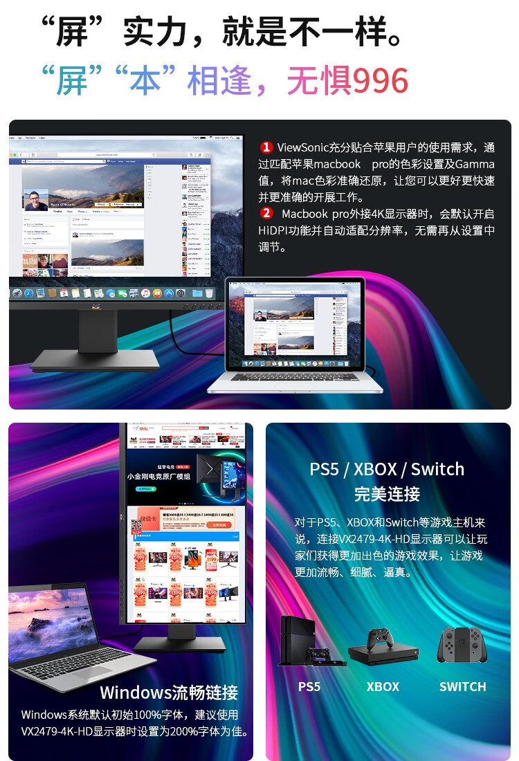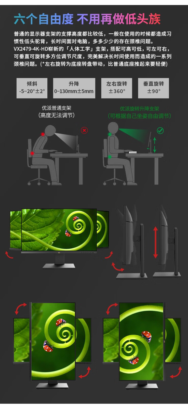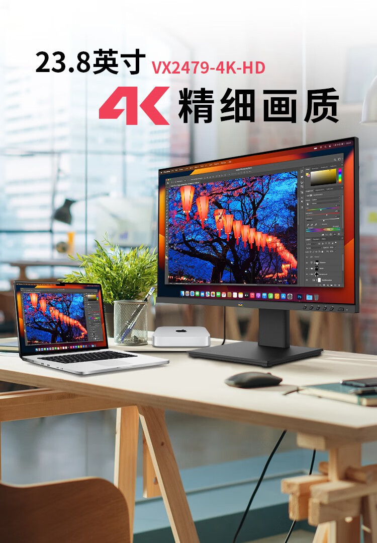 优派23.8英寸4K IPS视网膜屏HDR升降旋转电脑显示器VX2479-4K-HD