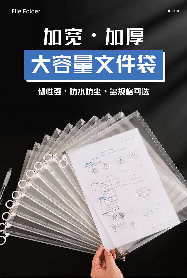 A4立体拉环文件袋加厚PP塑料磨砂大容量收纳袋学生试卷资料档案袋