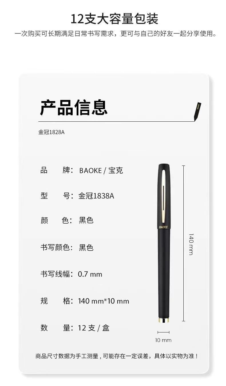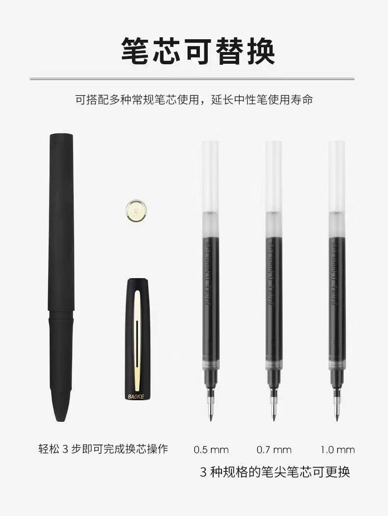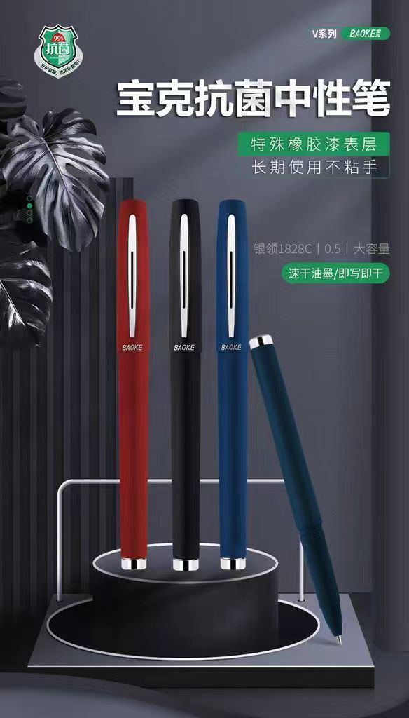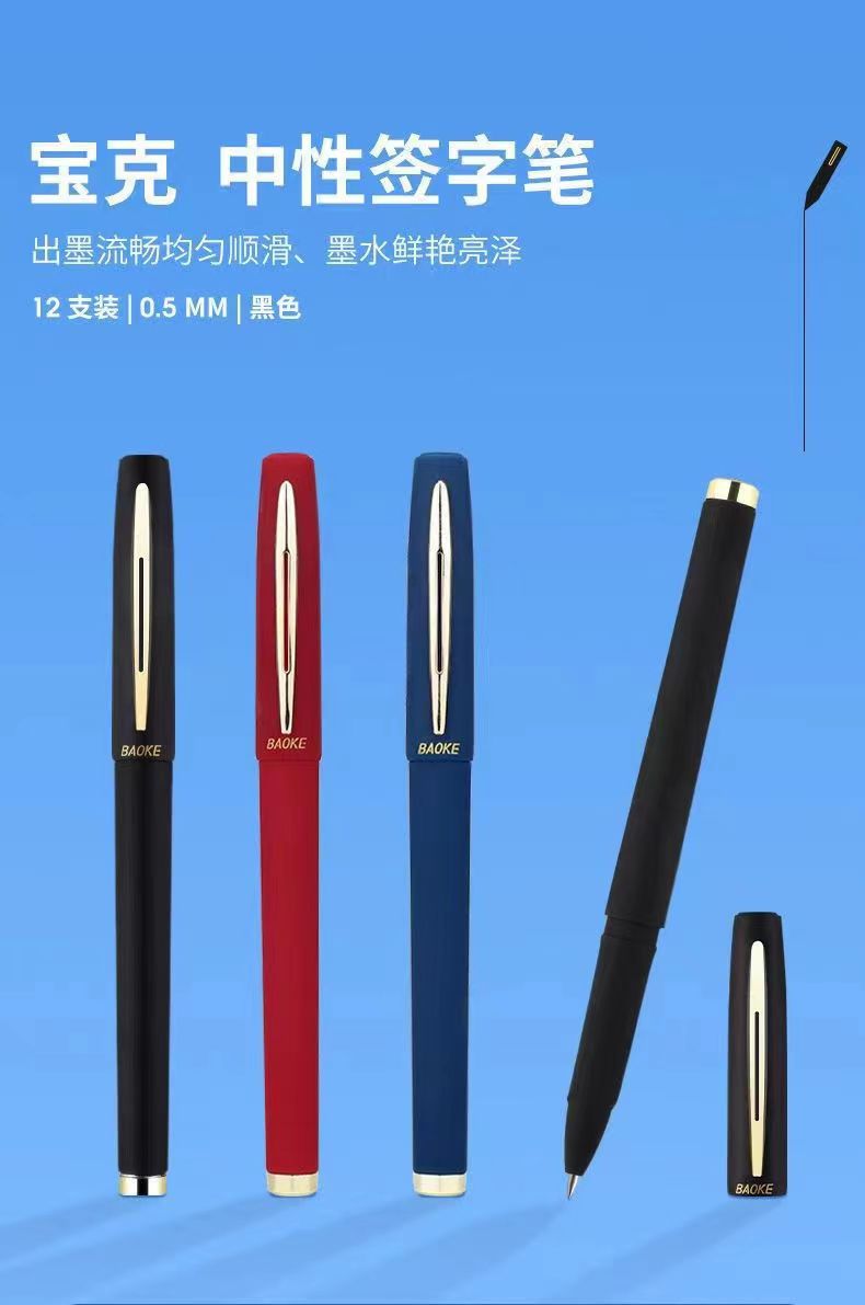 宝克中性笔大容量升级抗菌学生练字办公签字商务蓝黑色速干签字笔