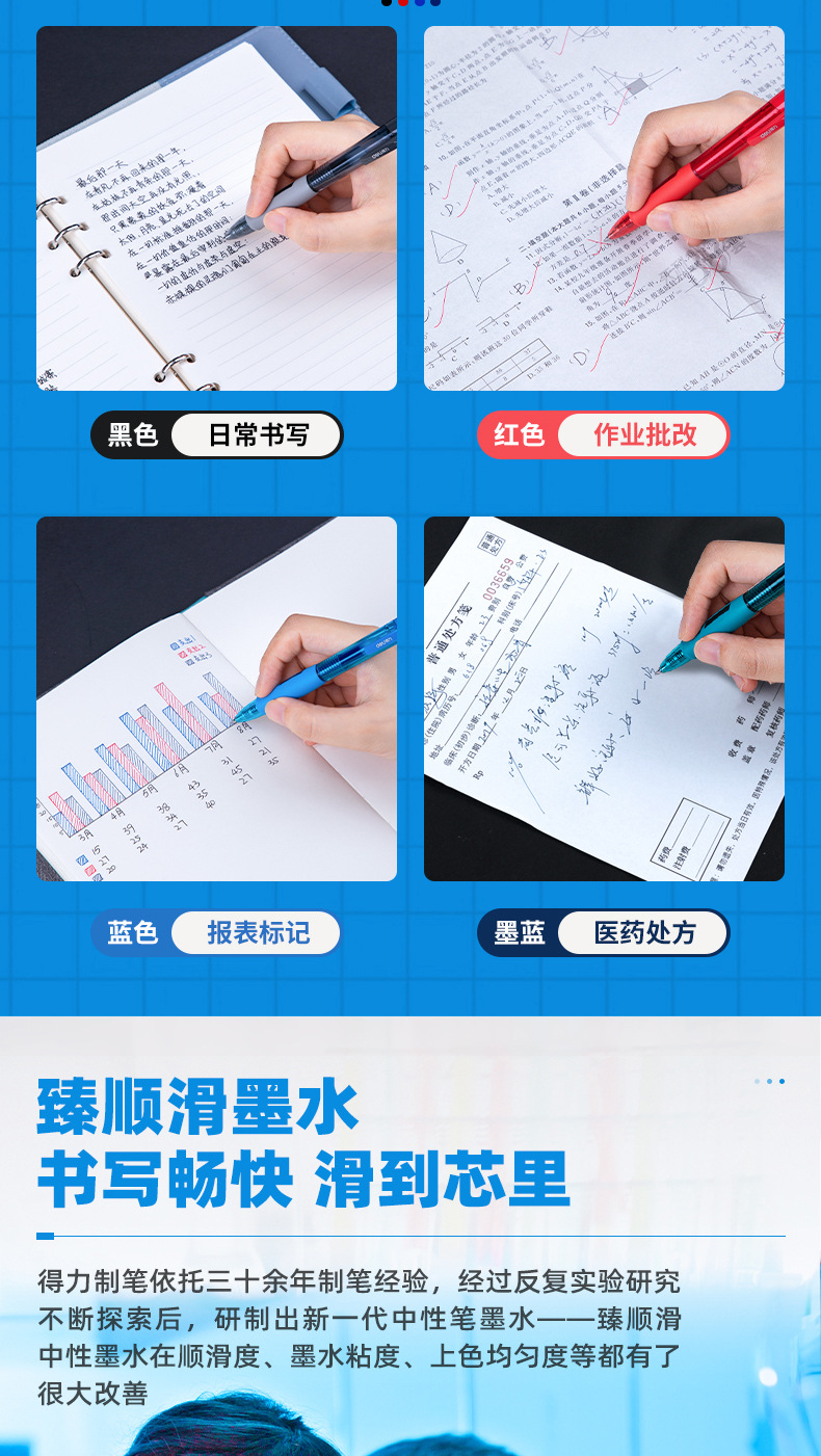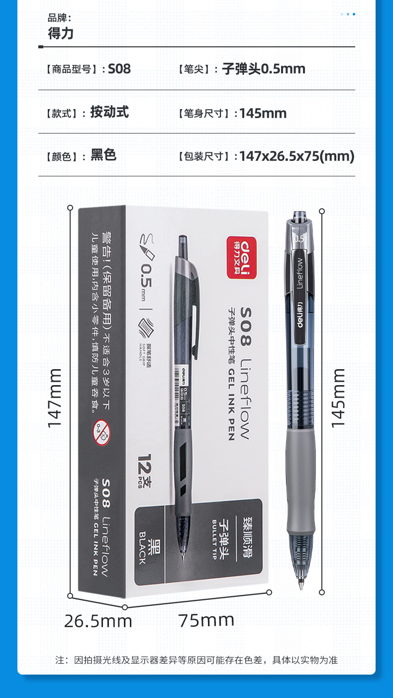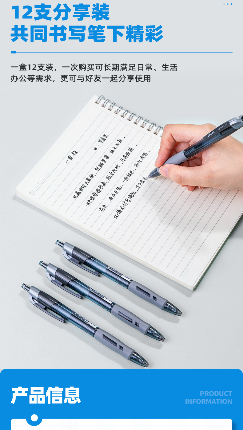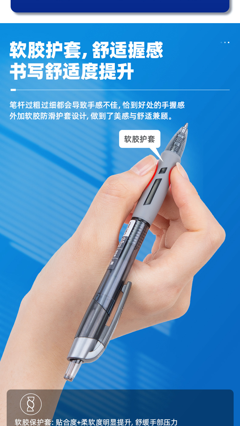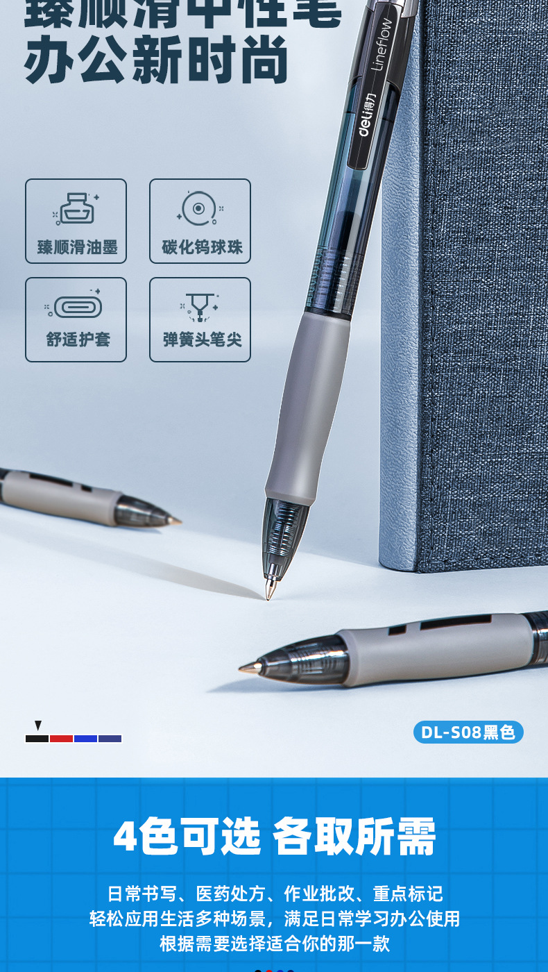 得力S08按动中性笔0.5mm蓝黑色子弹头医生处方笔学生办公文具水笔