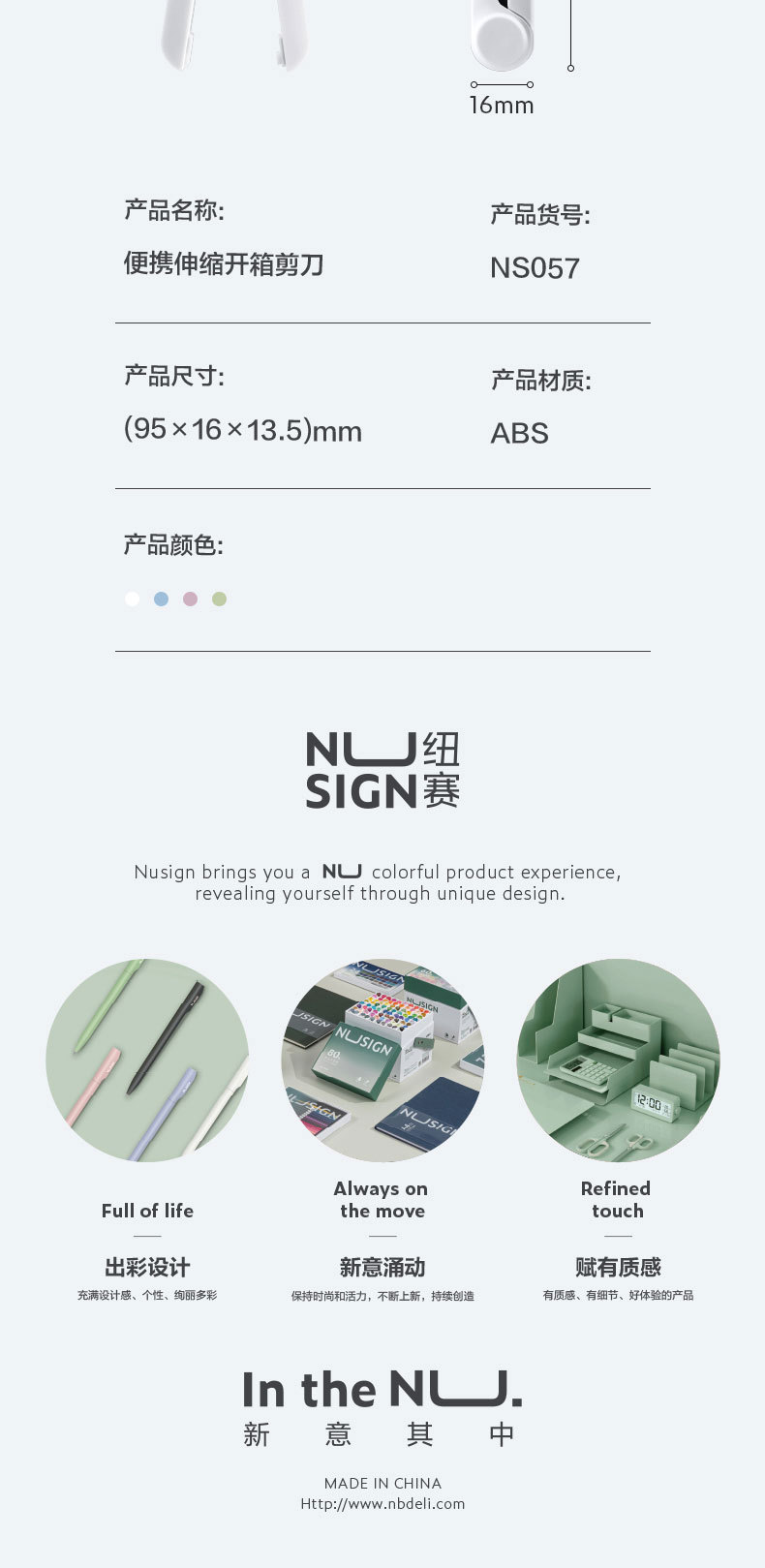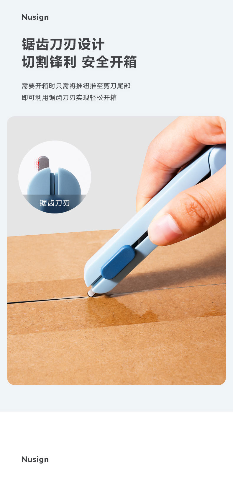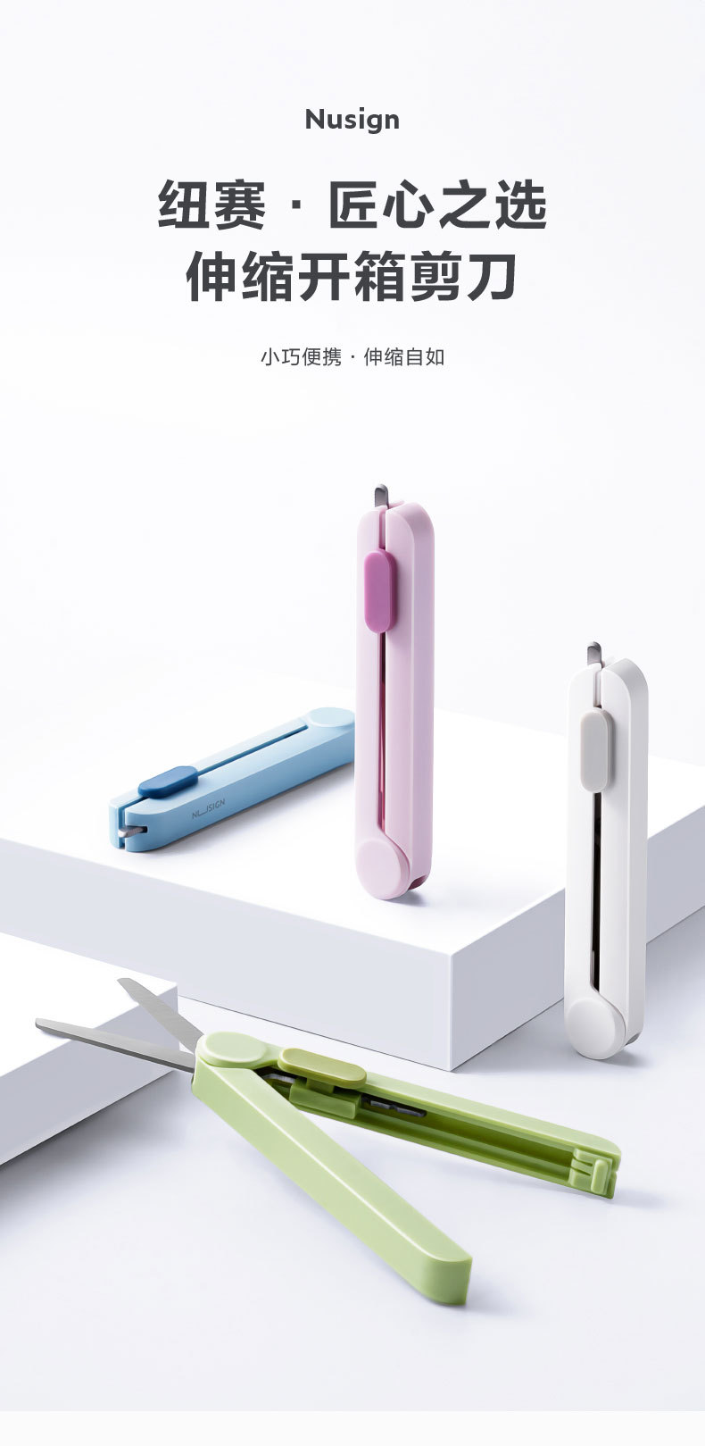 得力纽赛NS057剪刀不锈钢伸缩锯齿刃圆角刀尖快递开箱刀便携剪子
