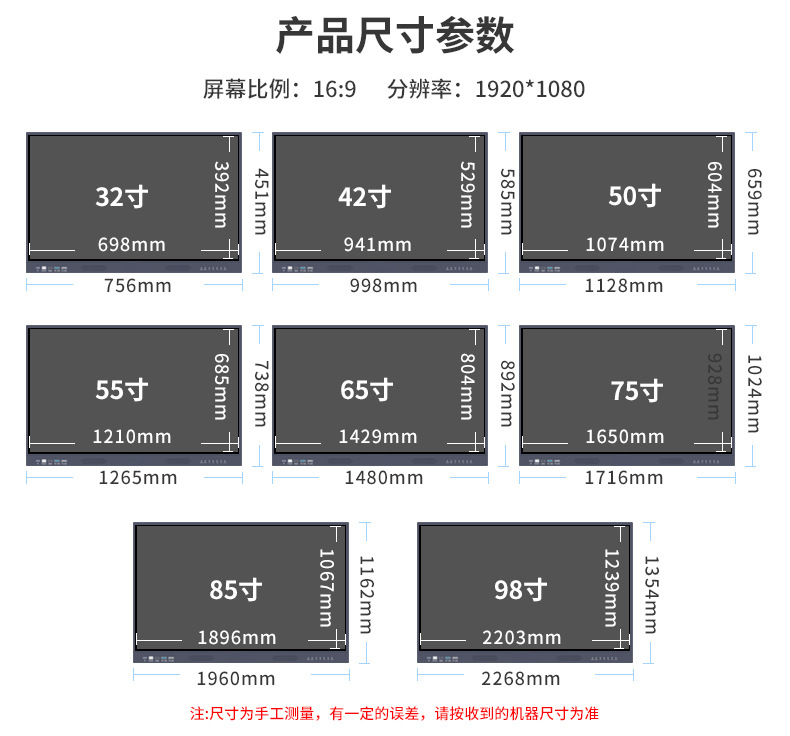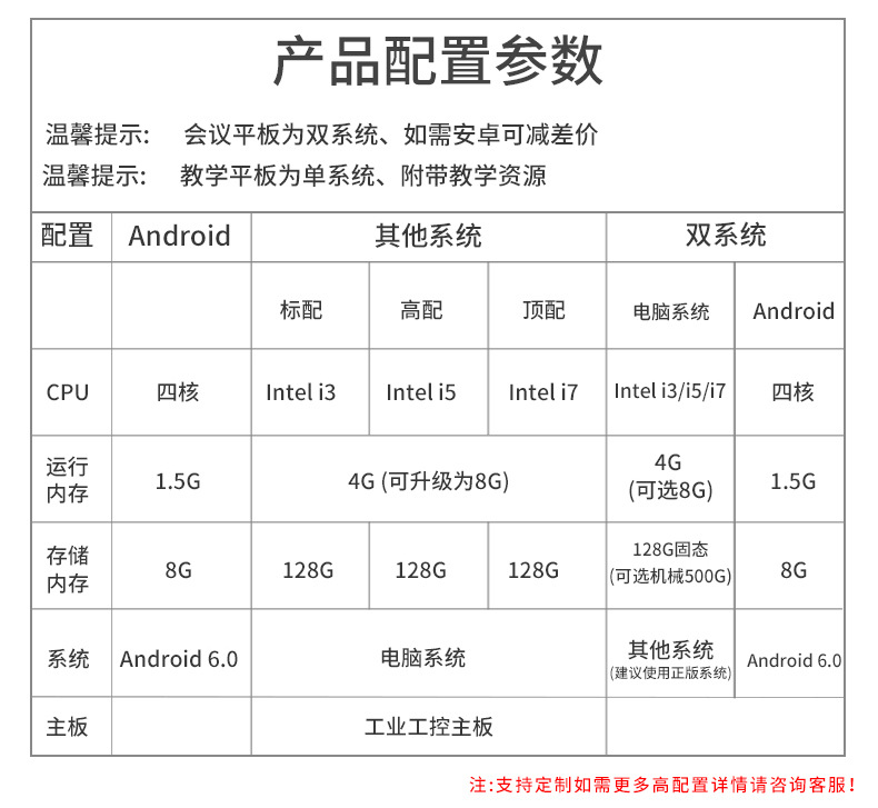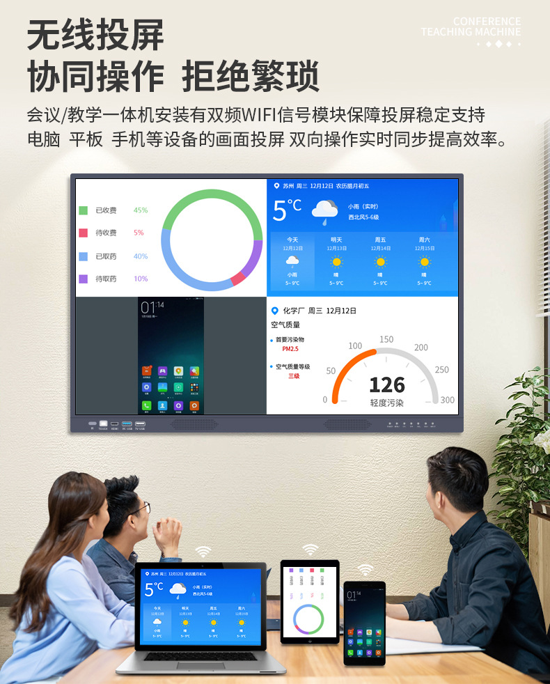 65/75/85/100寸4K会议平板幼儿园教学培训室一体机触屏投屏触控