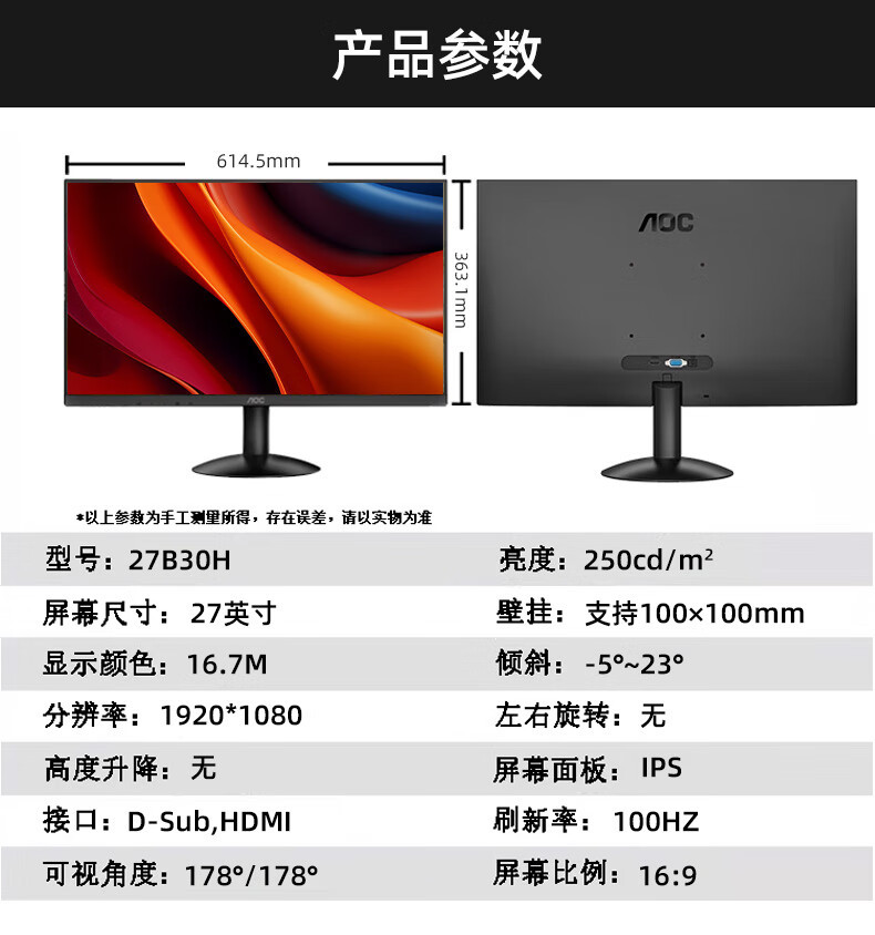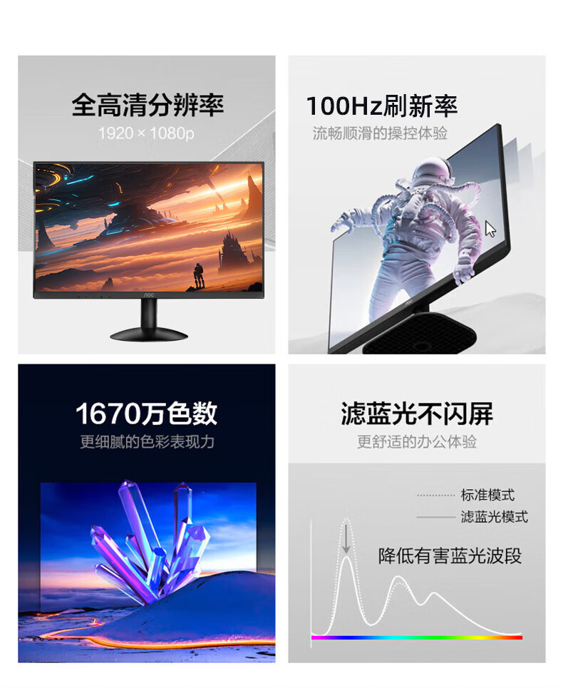 AOC 24/27寸电脑屏幕100hz IPS台式机电脑显示器液晶屏办公游戏