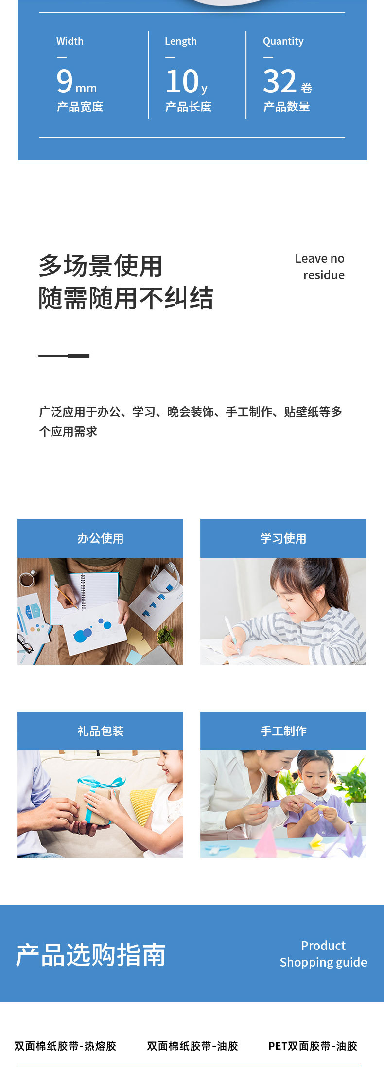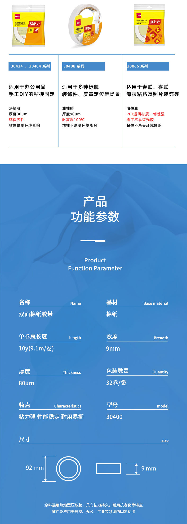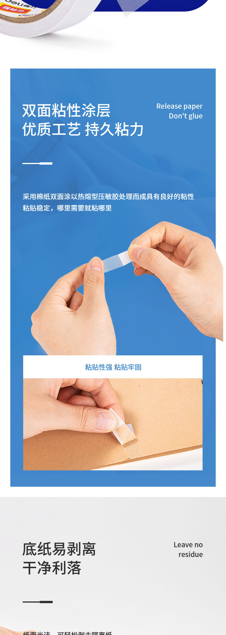 得力双面胶带强粘性办公用品学生手工双面胶易撕两面胶不留痕