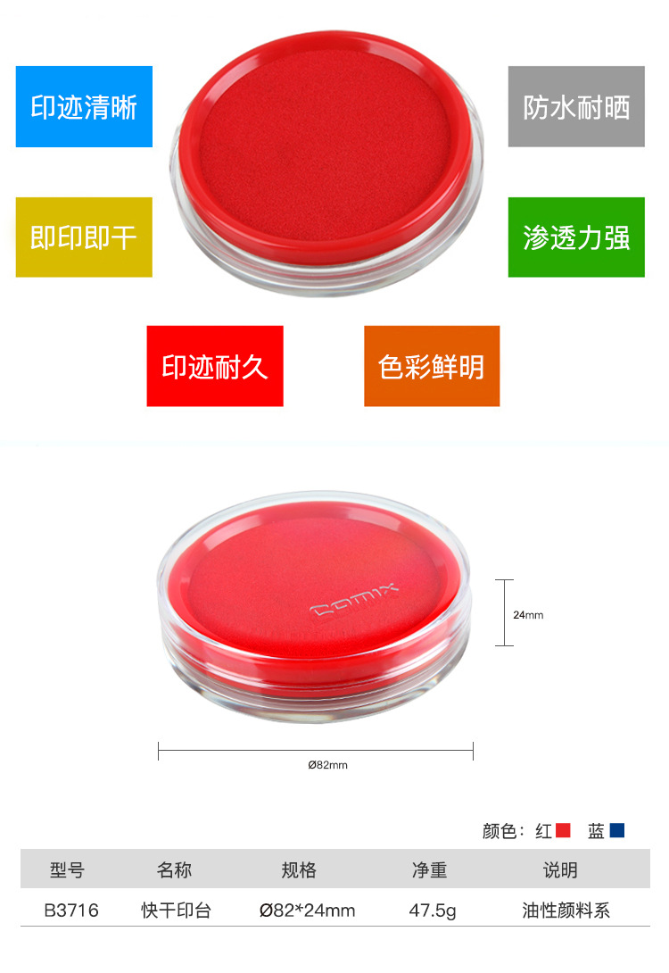 齐心 B3716 快干海绵红色印台 中号 配套印油B3712 印台
