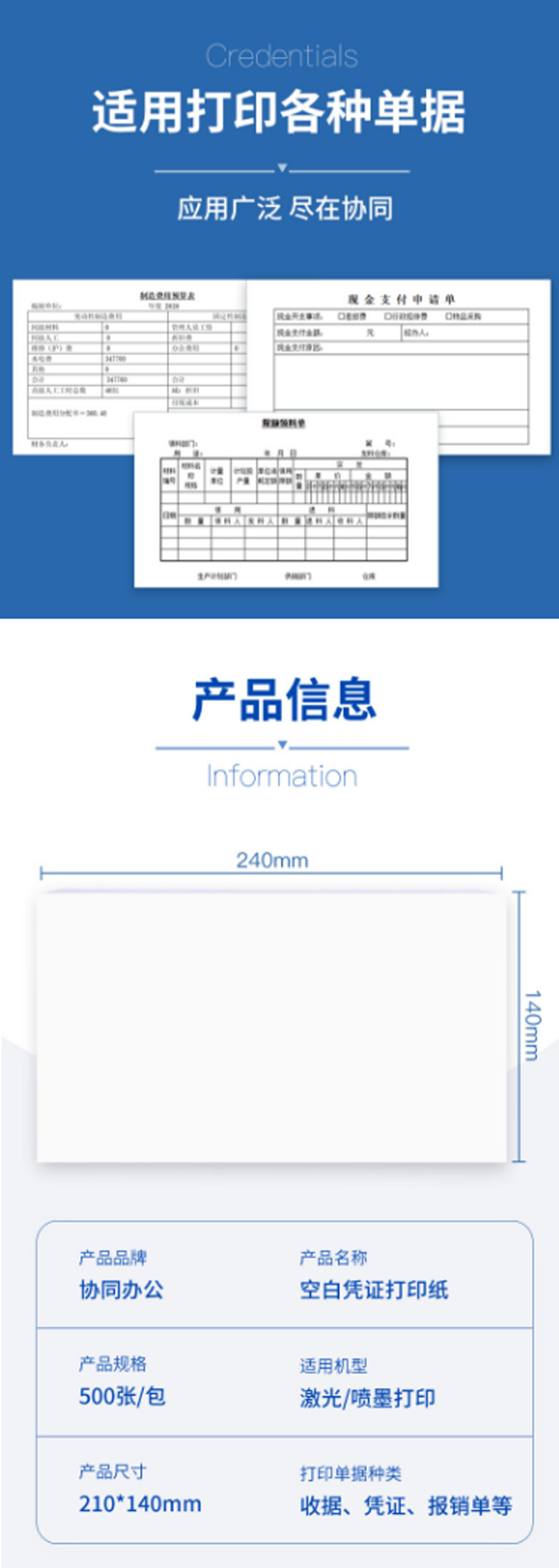 空白凭证纸70g 240*140mm 500张/包 财务统计出库记账电脑打印纸