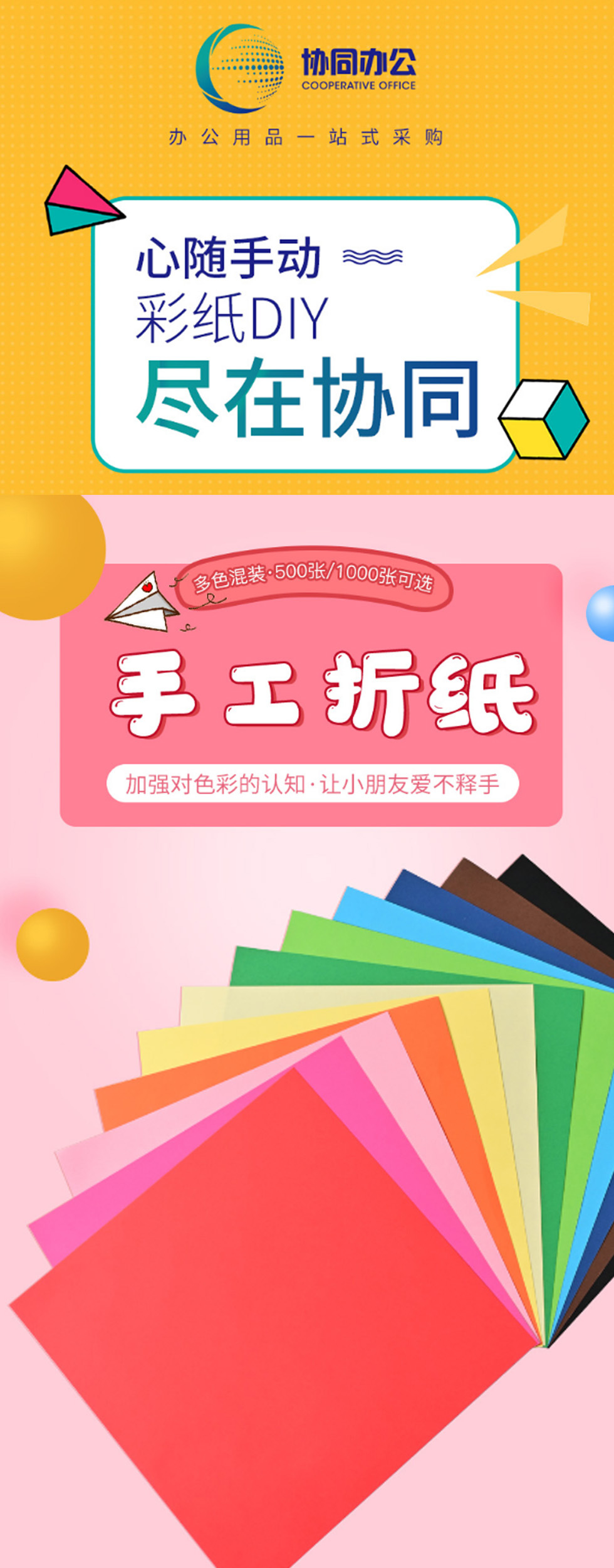 协同 趣味折纸 彩纸 彩色卡纸千纸鹤 儿童diy剪纸正方形(50*50mm)
