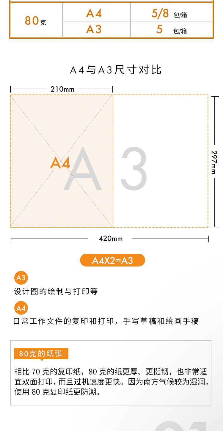 UPM橙新好a4a3打印纸70G复印纸学生草稿纸80克双面打印纸办公用品