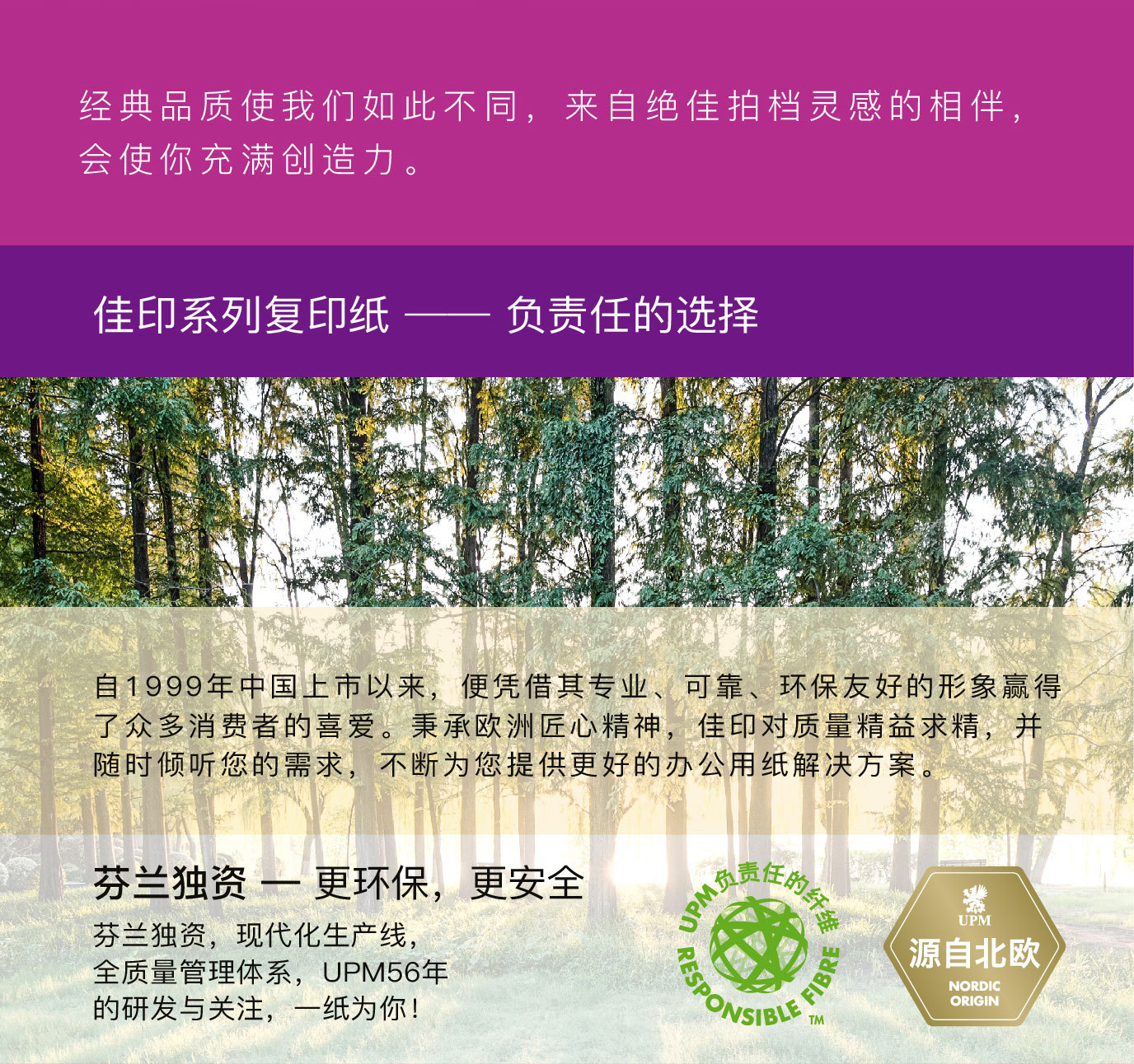 UPM经典佳印A4纸 80克A4复印纸70克纸办公A3双面打印高端纸紫佳印