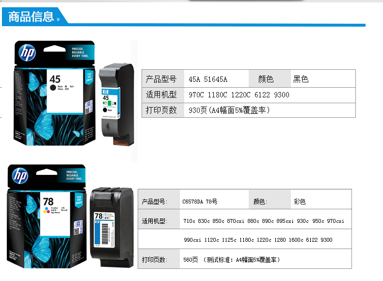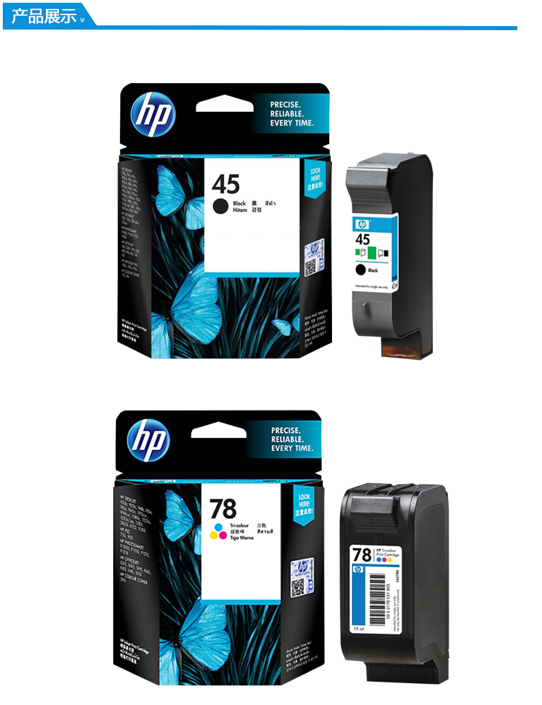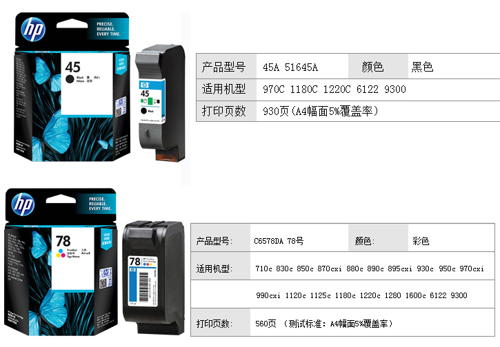 原装惠普45打印机墨盒 1280 1180C 45A 51645A黑色 78彩色
