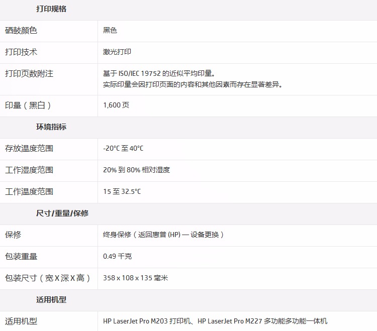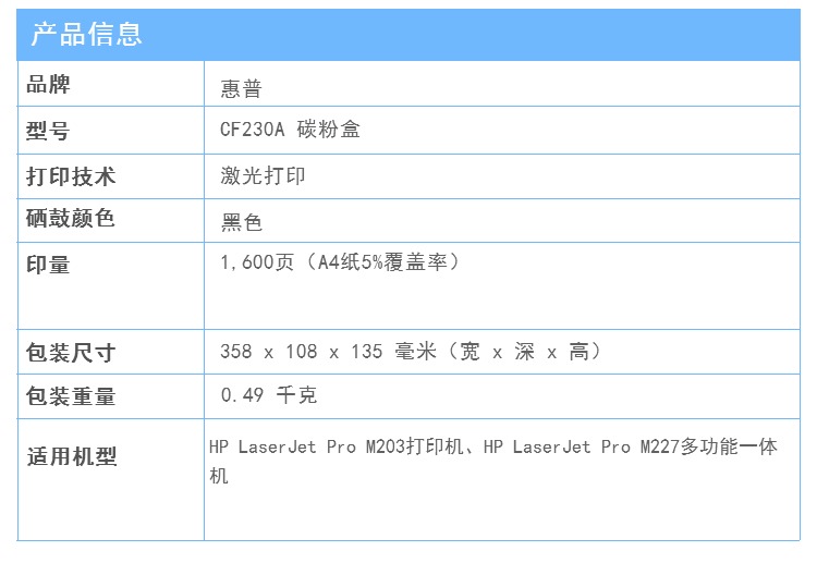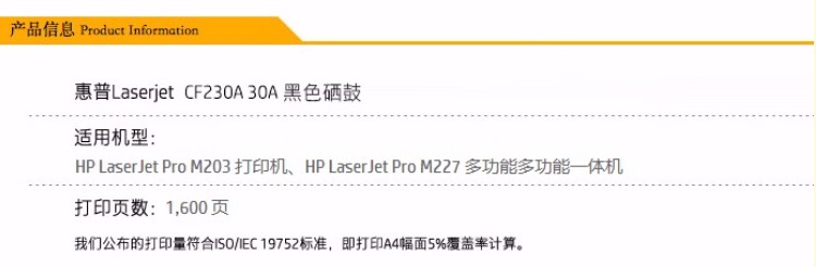 惠普(HP)CF230A 30A 碳粉盒(适用M203d/dn/dw M227d/sdn/fdn/f
