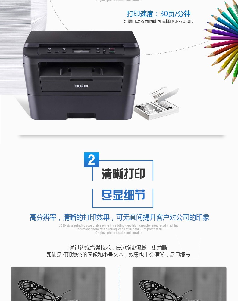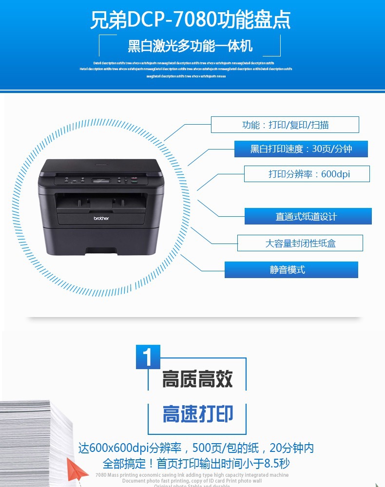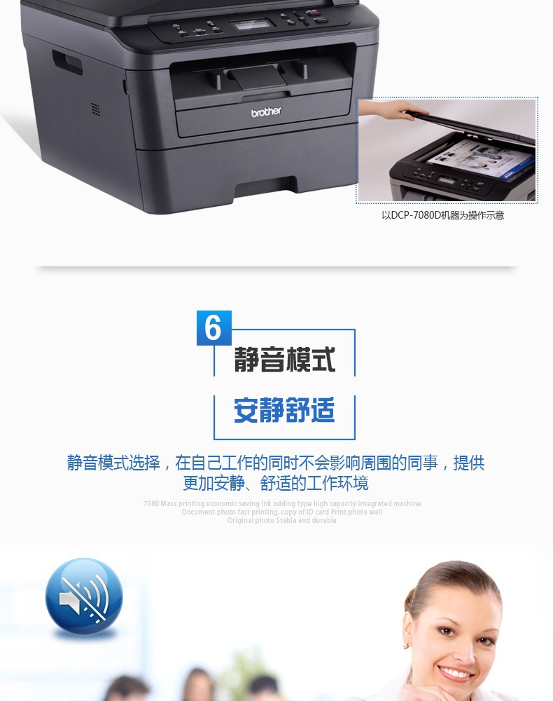 - 兄弟DCP-7180DN黑白激光打印复印扫描一体机自动双面网络A4