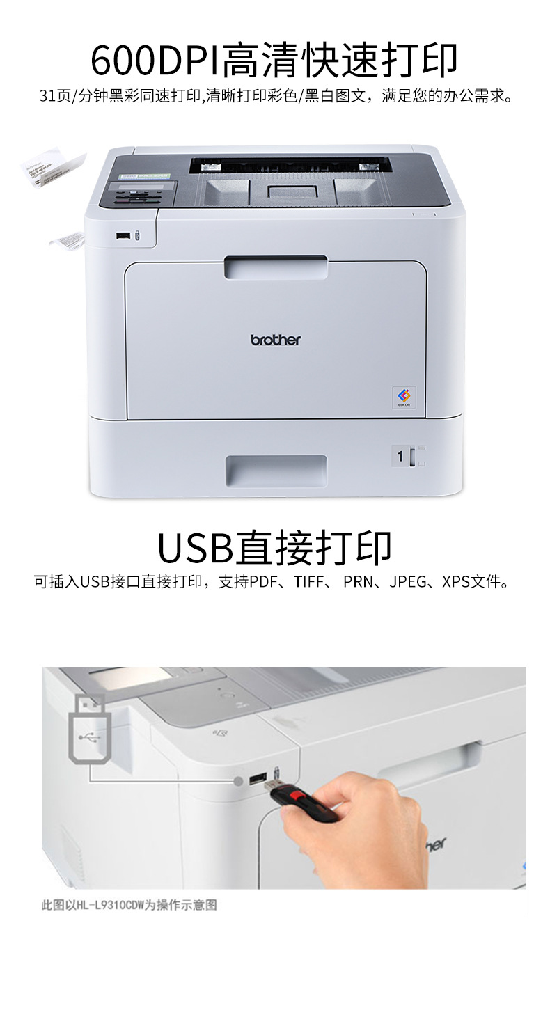 兄弟HL-L9310CDW彩色激光打印机办公商务自动双面手机网络打印A4