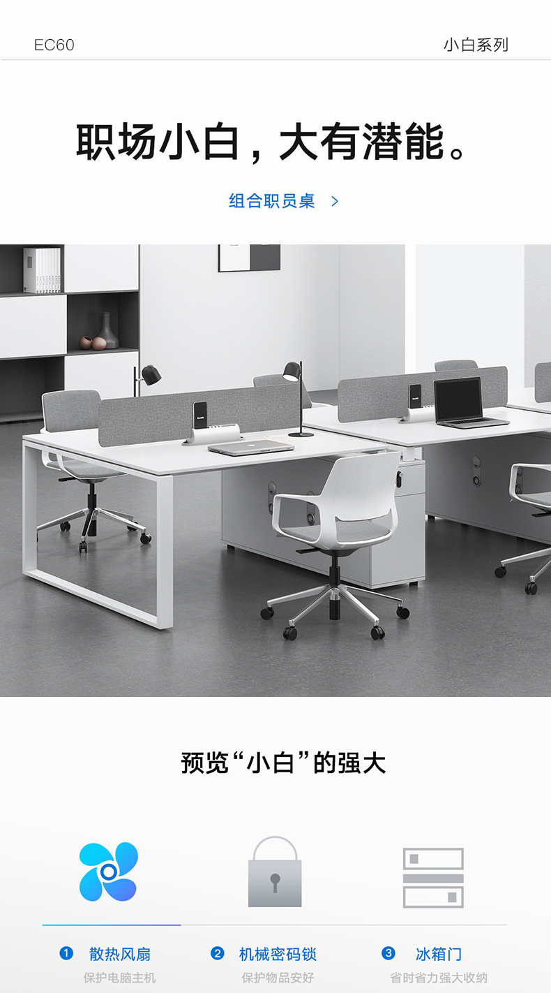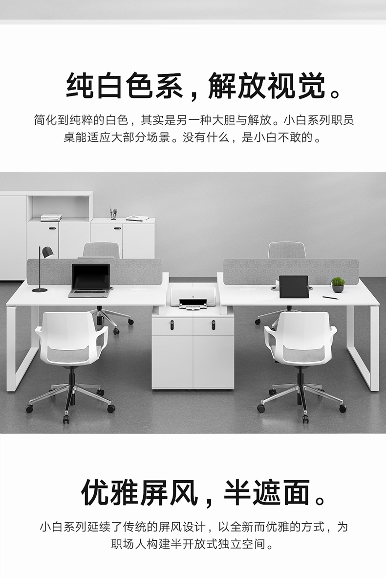 办公桌椅组合简约现代办公家具白色2/4/6人职员桌办公室屏风工位