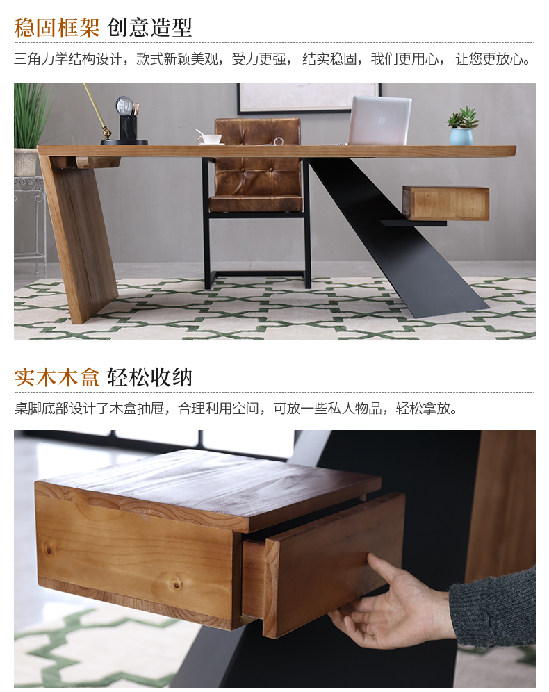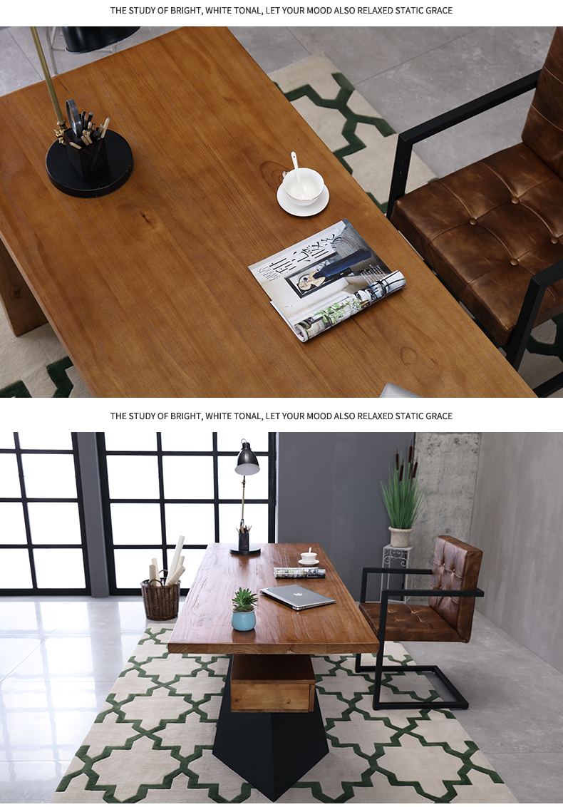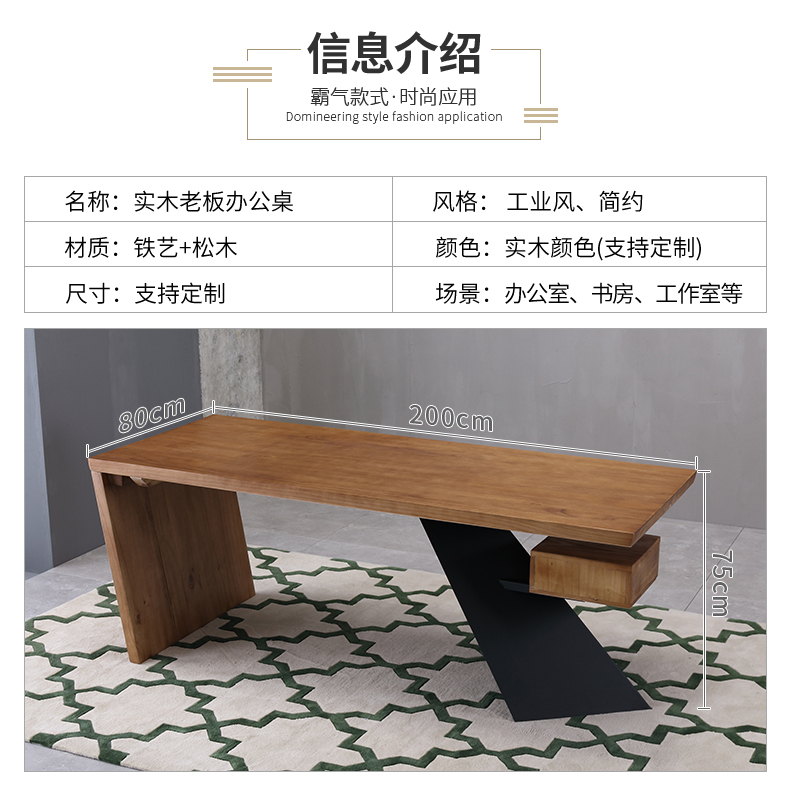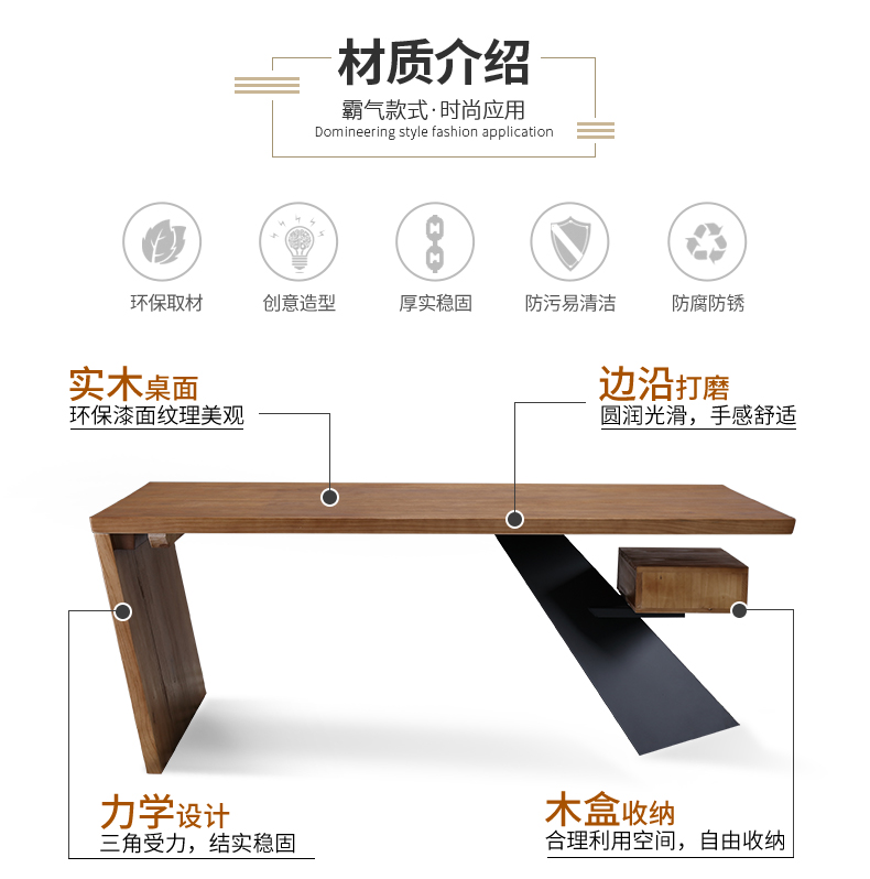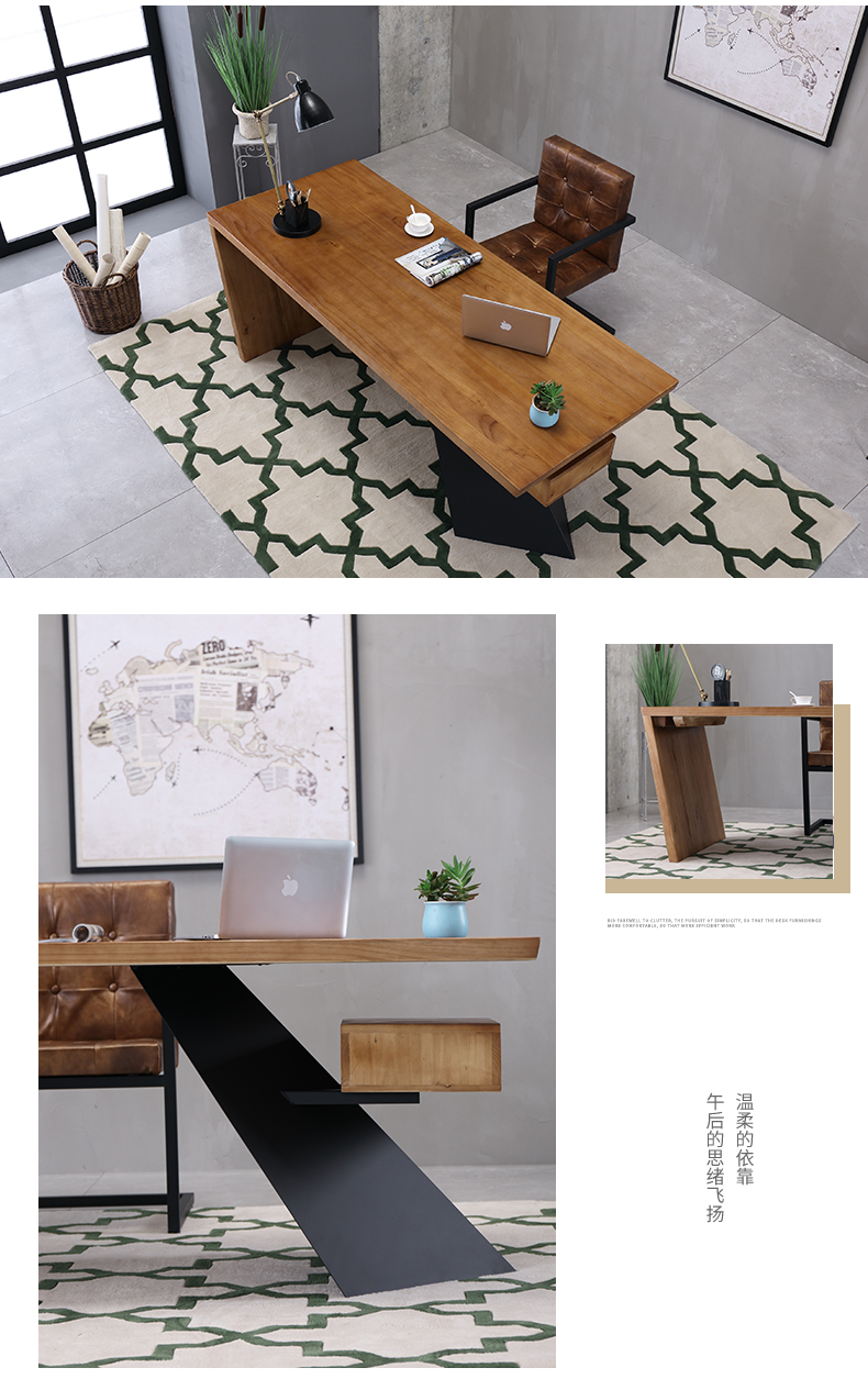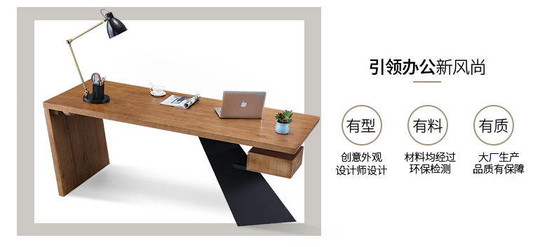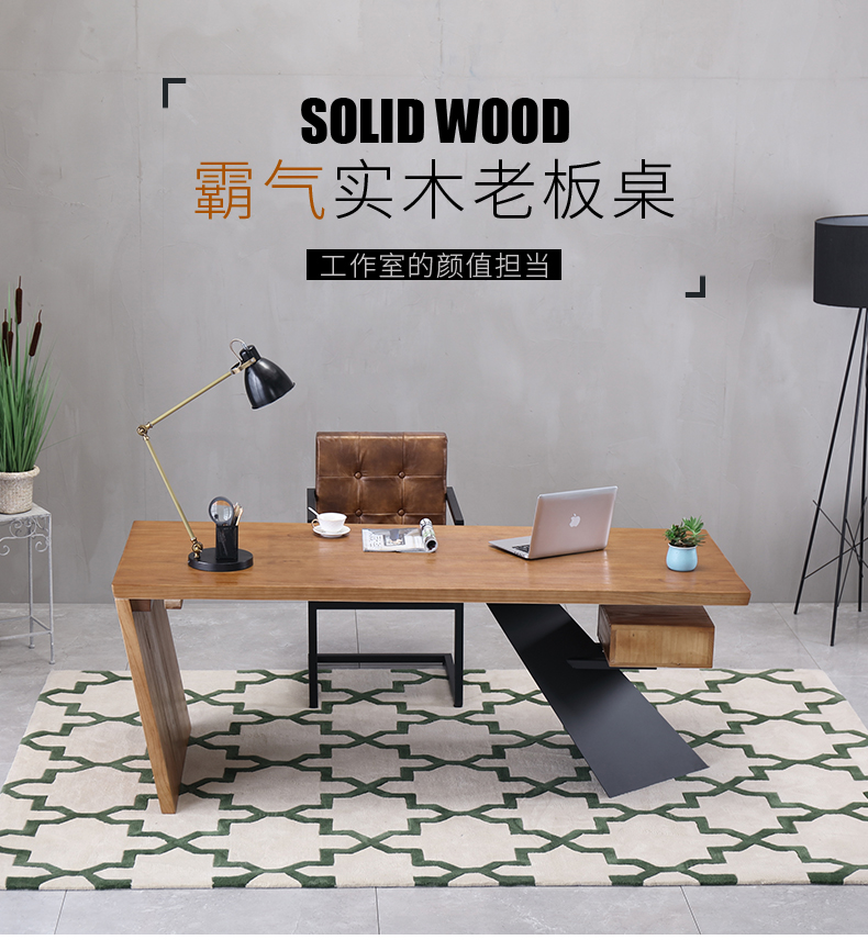 loft实木老板桌简约现代创意办公桌设计师办工桌北欧原木电脑桌