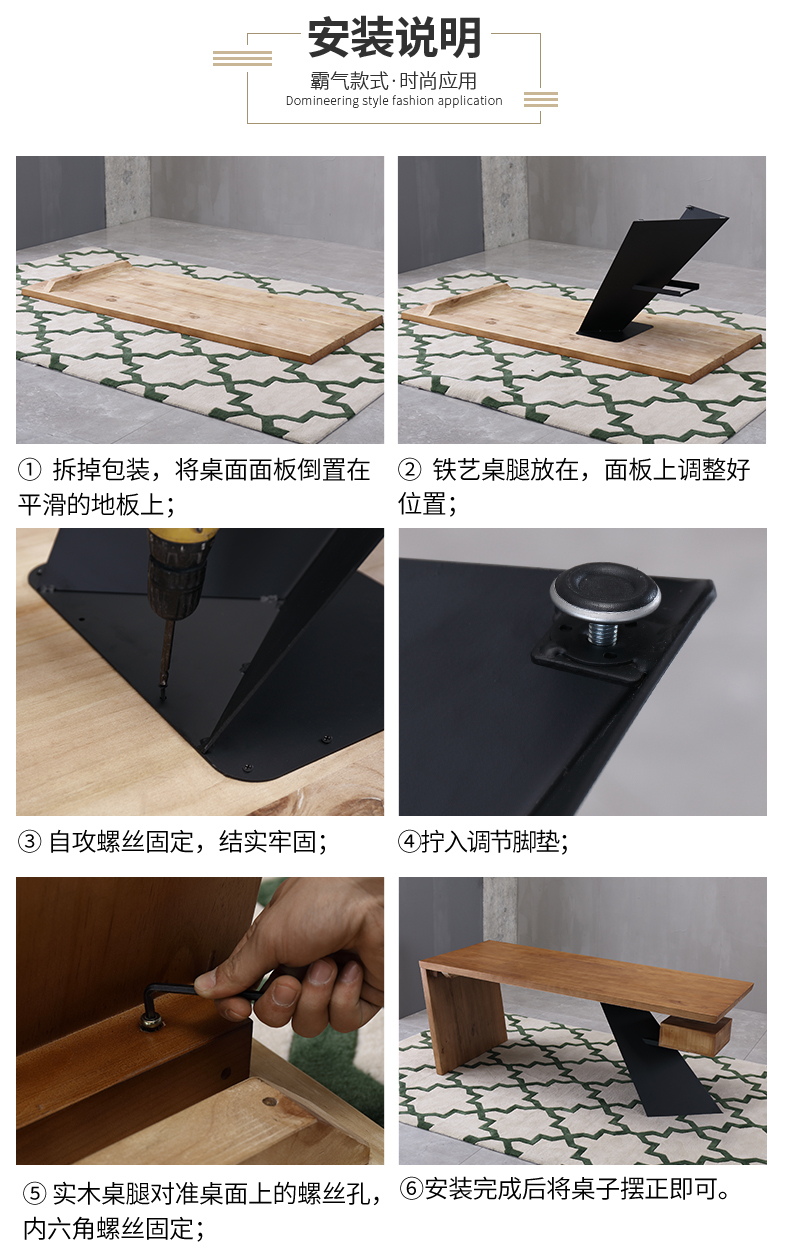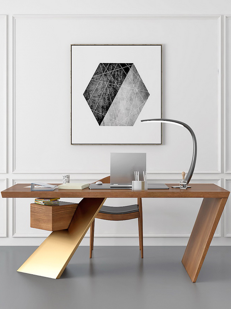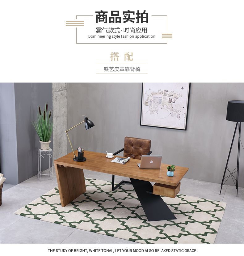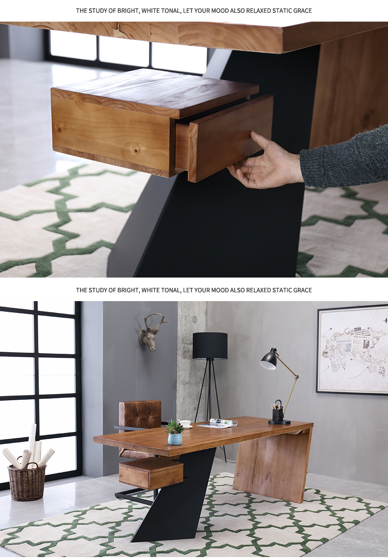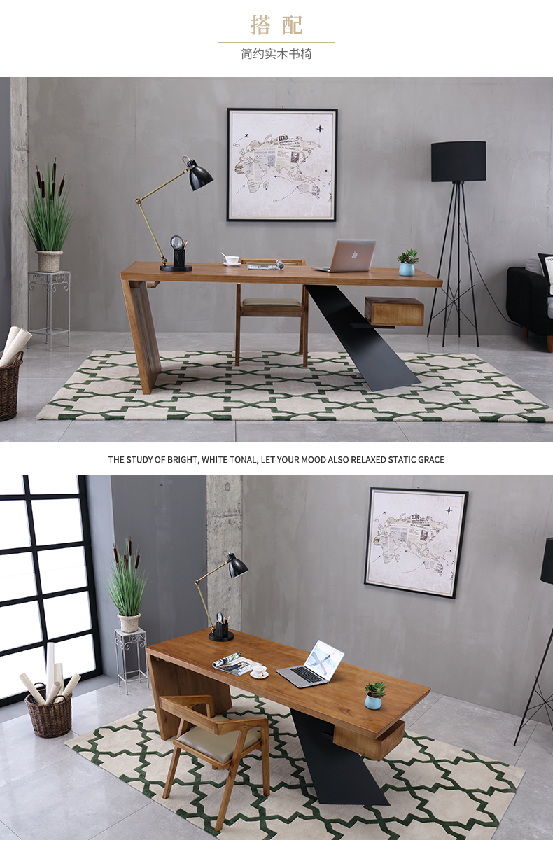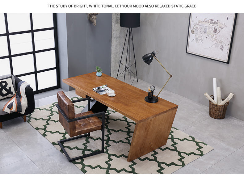 loft实木老板桌简约现代创意办公桌设计师办工桌北欧原木电脑桌