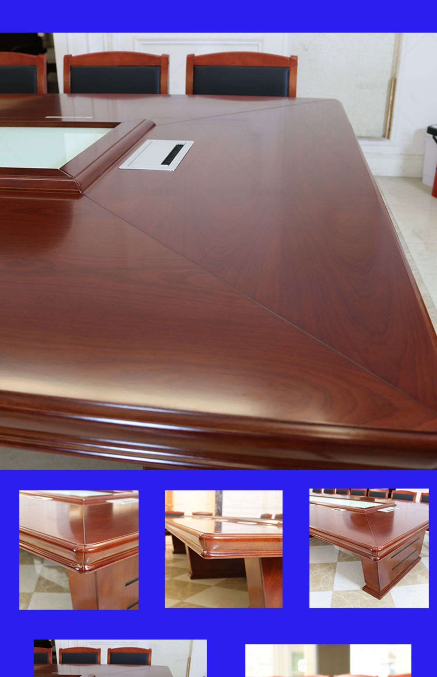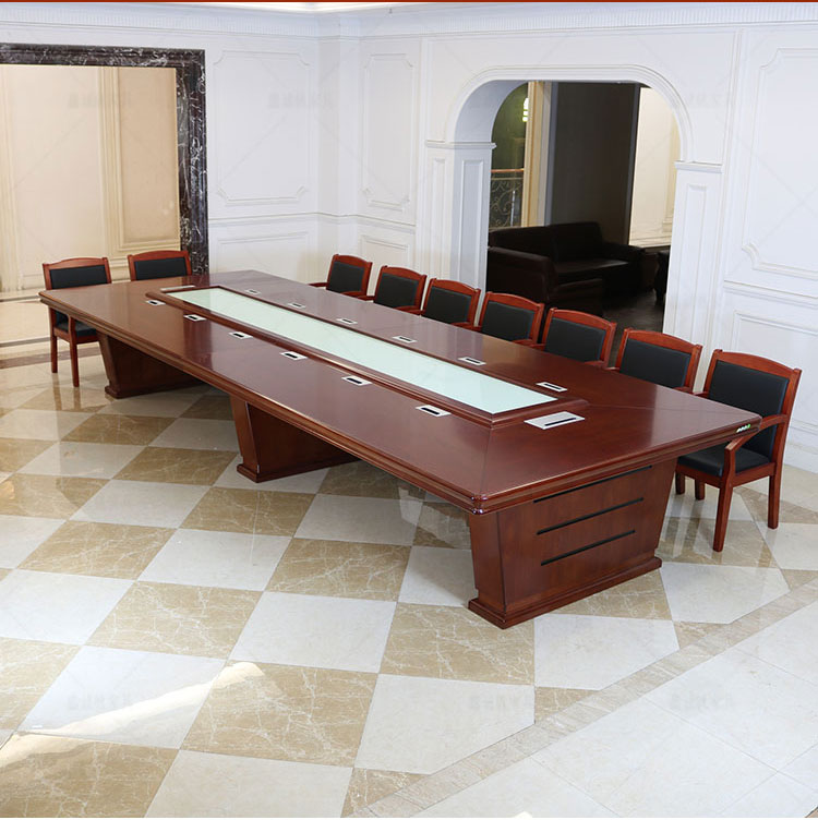 会议桌长桌实木皮油漆条形桌椅组合多功能烤漆大型会议台家具