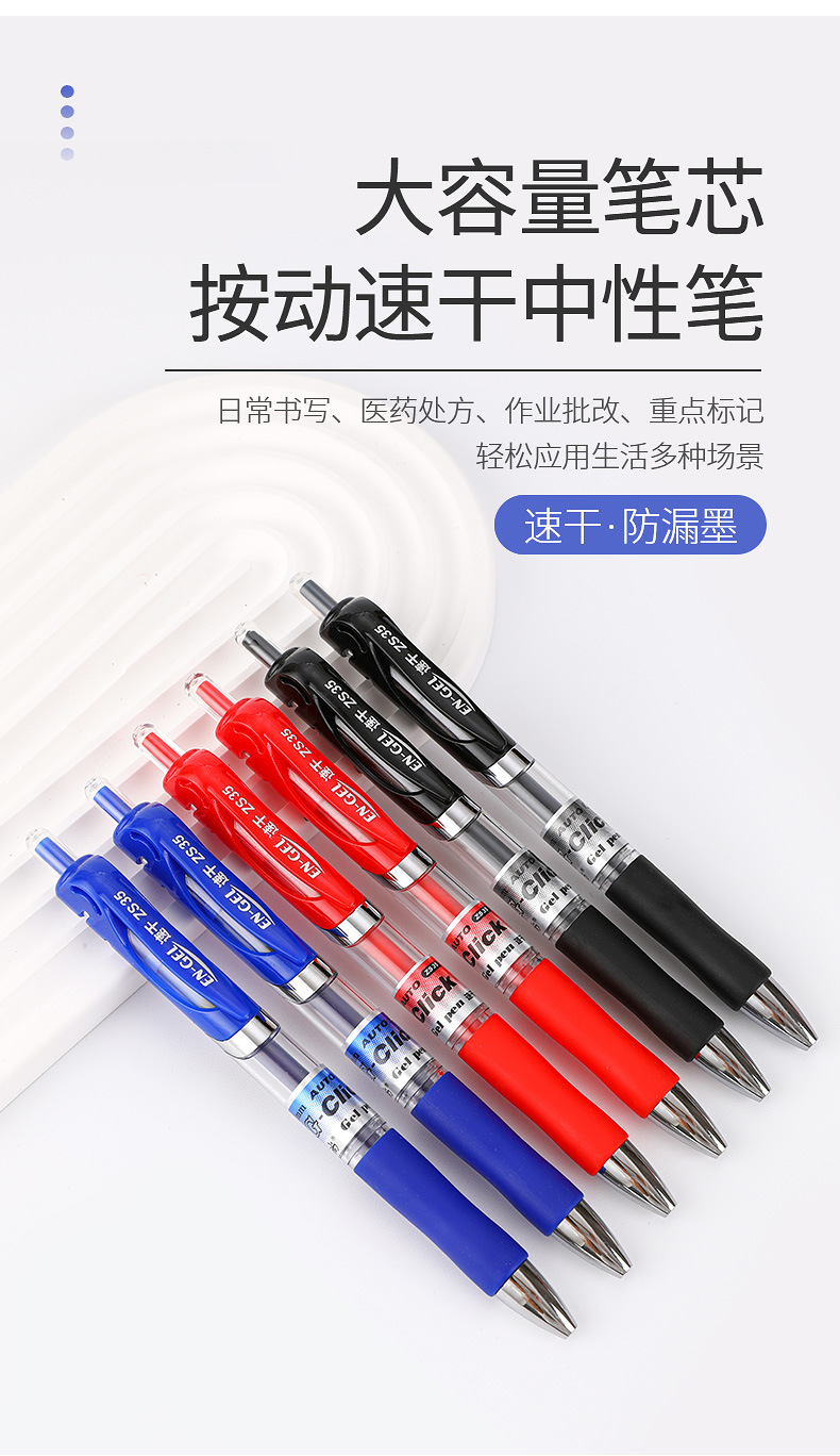 按动中性笔 大容量签字笔办公书写水性笔 品牌文具0.5学生考试笔