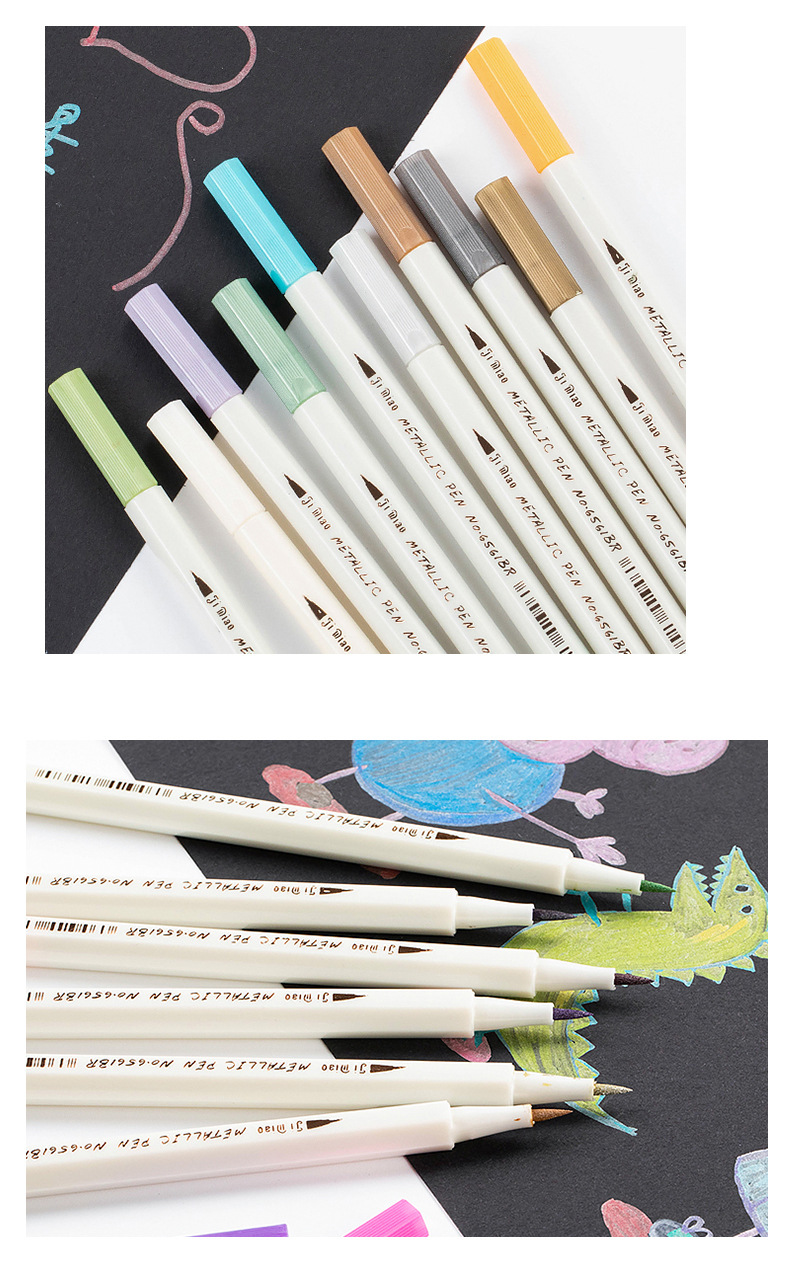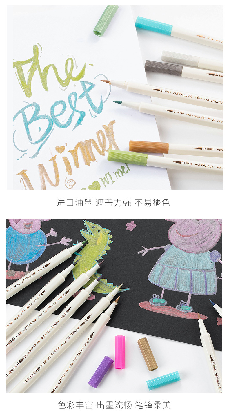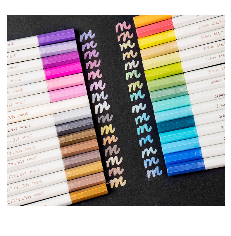 金属笔30色套装水性记号笔 软头卡通手账相册水彩笔 黑卡纸涂鸦笔