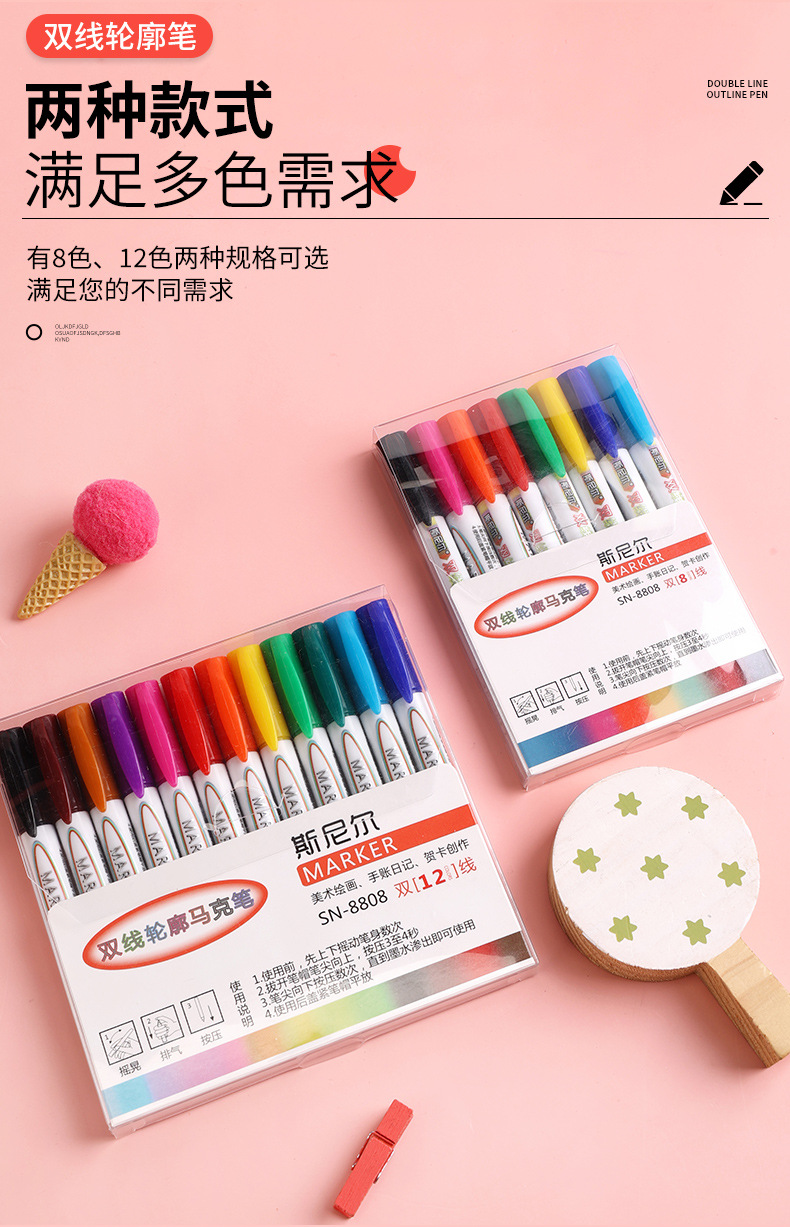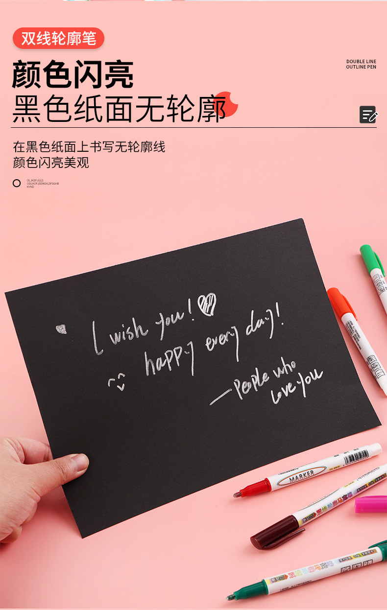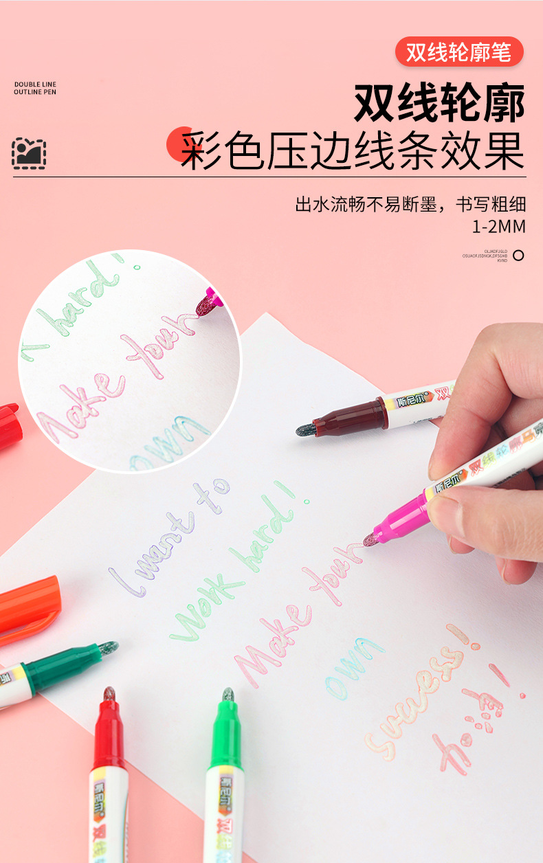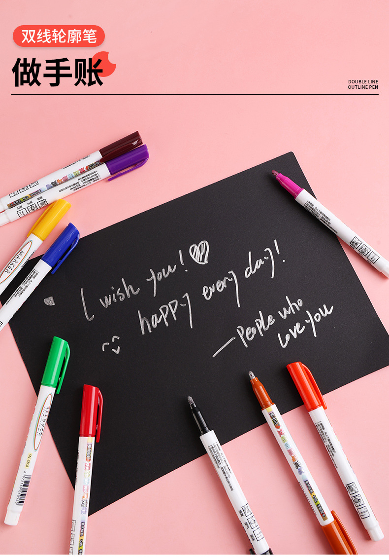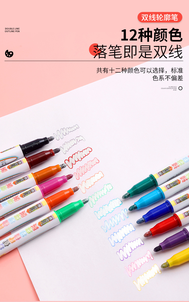 双线轮廓笔 手账记号笔闪光笔金属马克笔 特价12色套装银底荧光笔