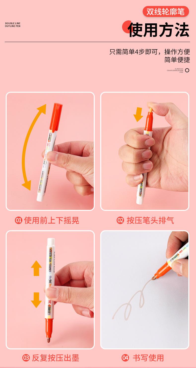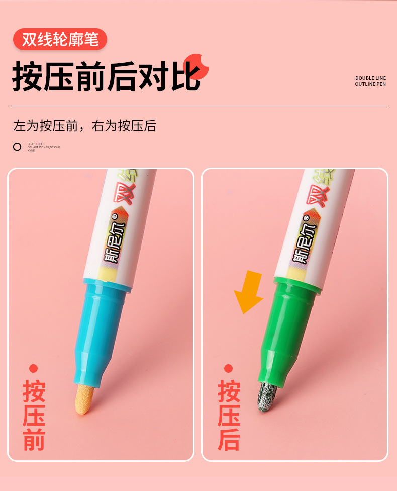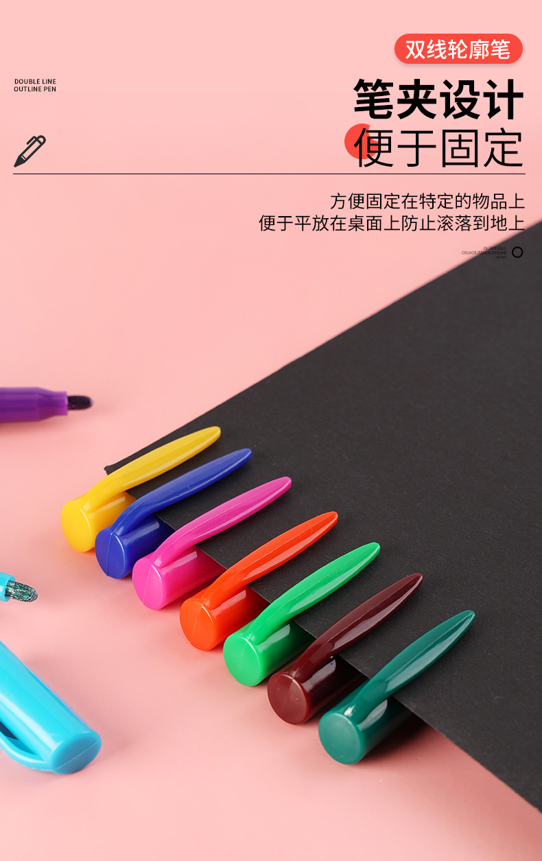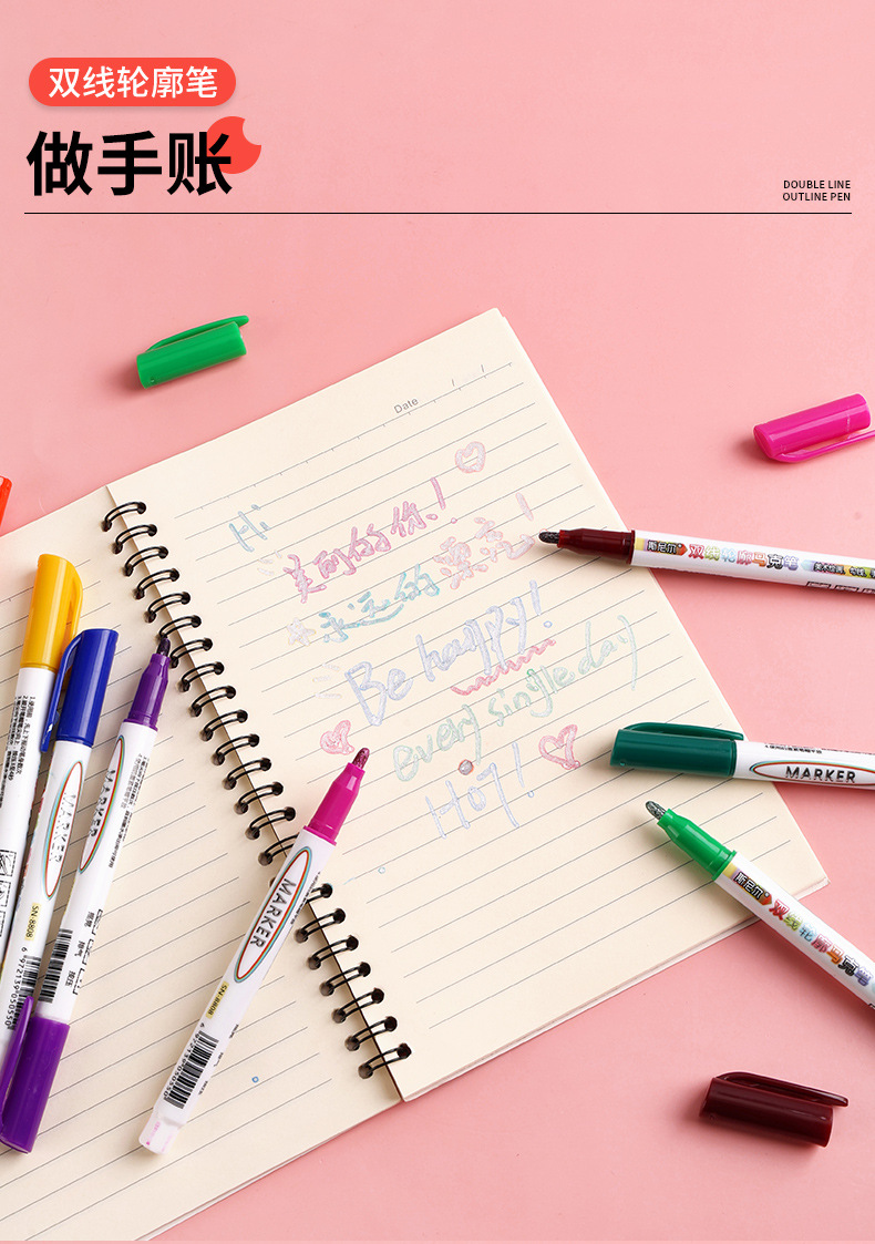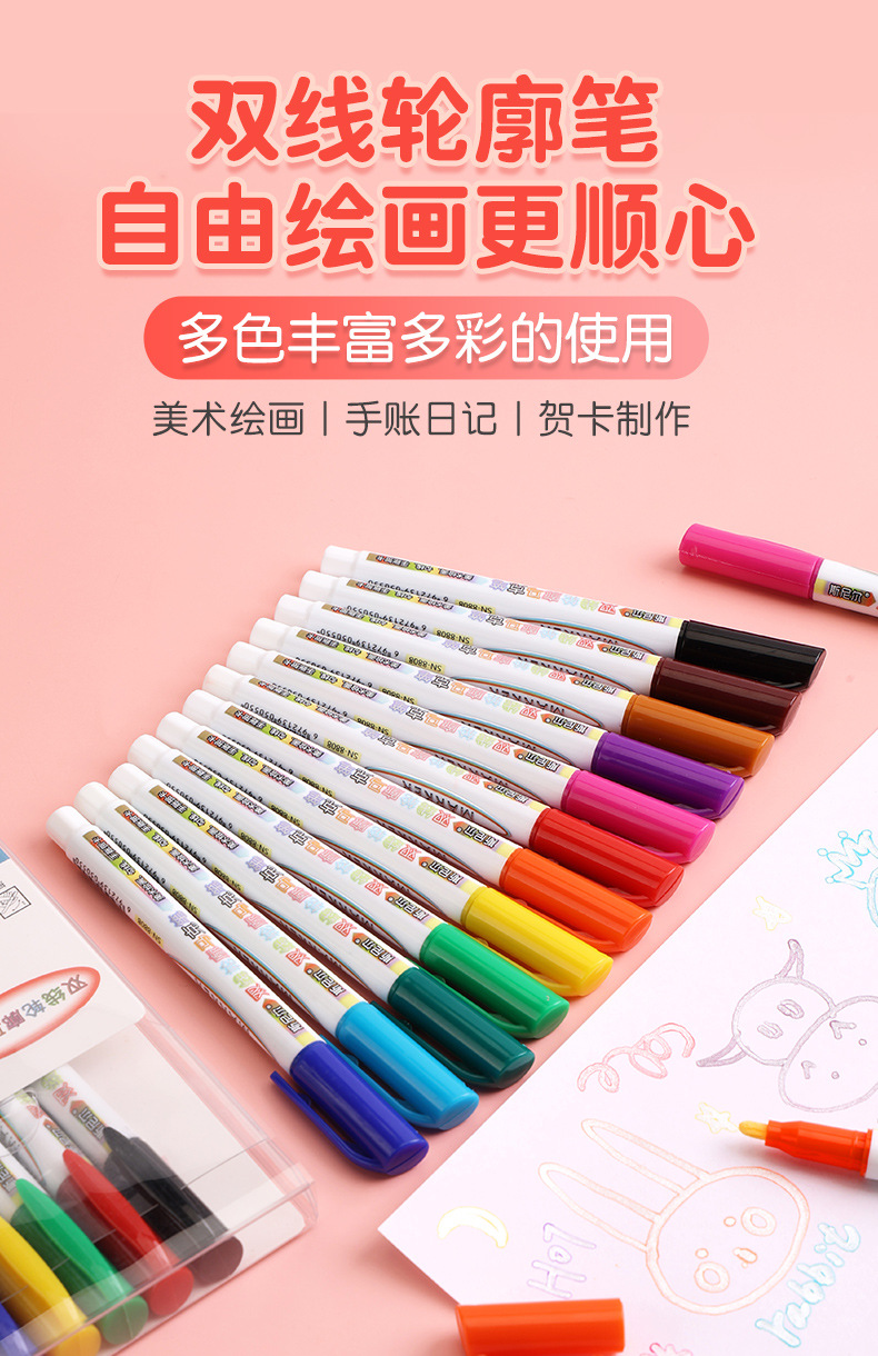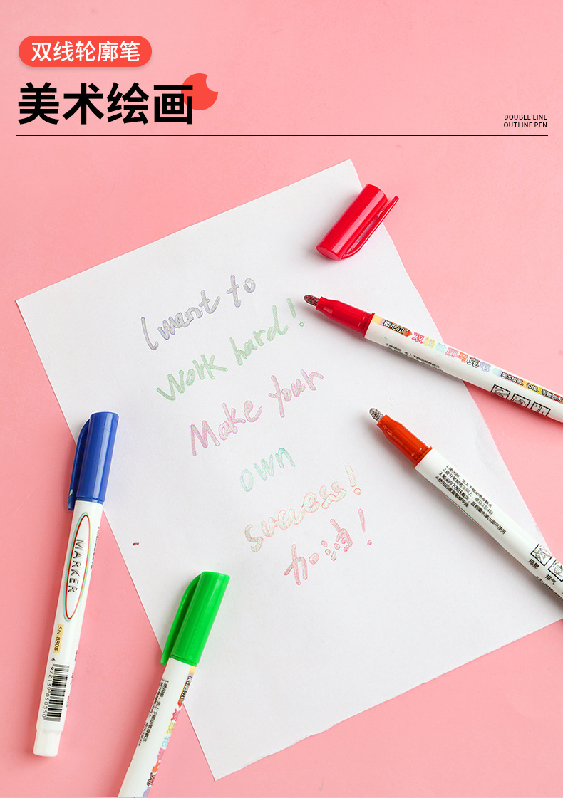 双线轮廓笔 手账记号笔闪光笔金属马克笔 特价12色套装银底荧光笔