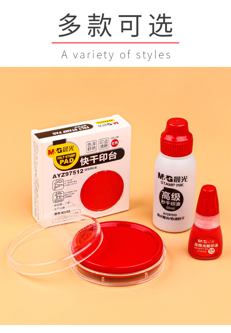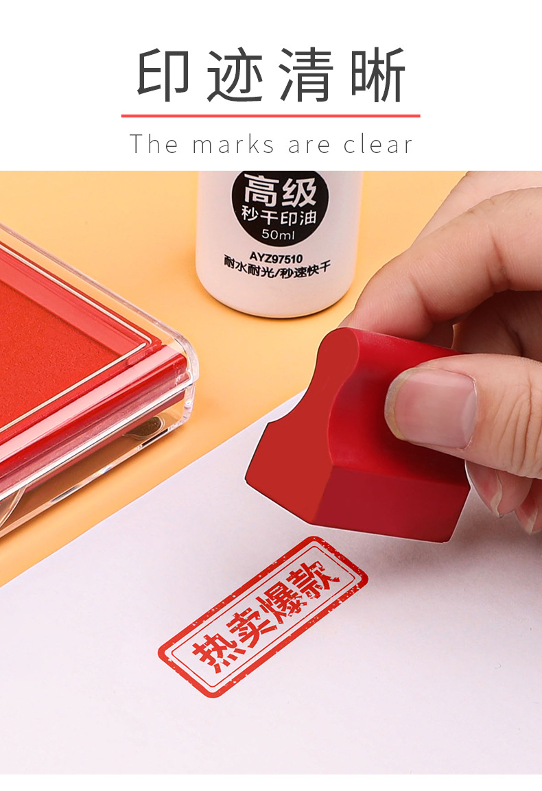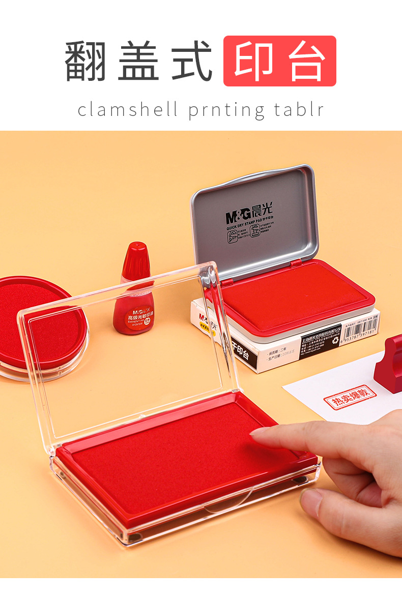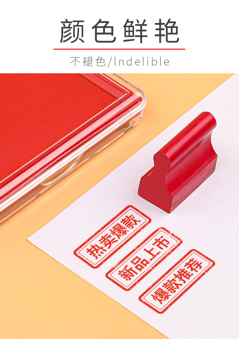 快干印台红色印泥盒方形大号圆形小号便携财务会计办公用